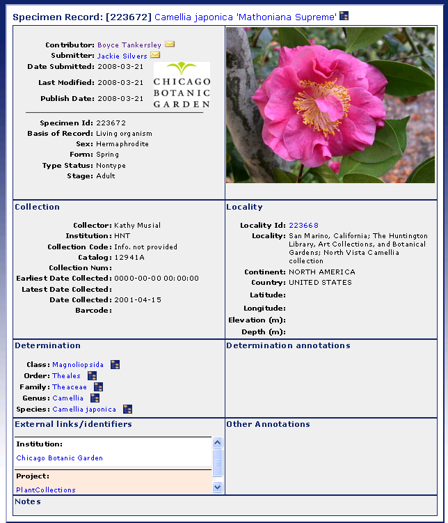 As of the writing of this manual, Specimen, Image, View, Locality, Annotation, Collection, User, Group, Publication, Taxa, OTUs, Characters and News have the Show capability.The data in these objects is quite different. How does Morphbank know how to show the data?